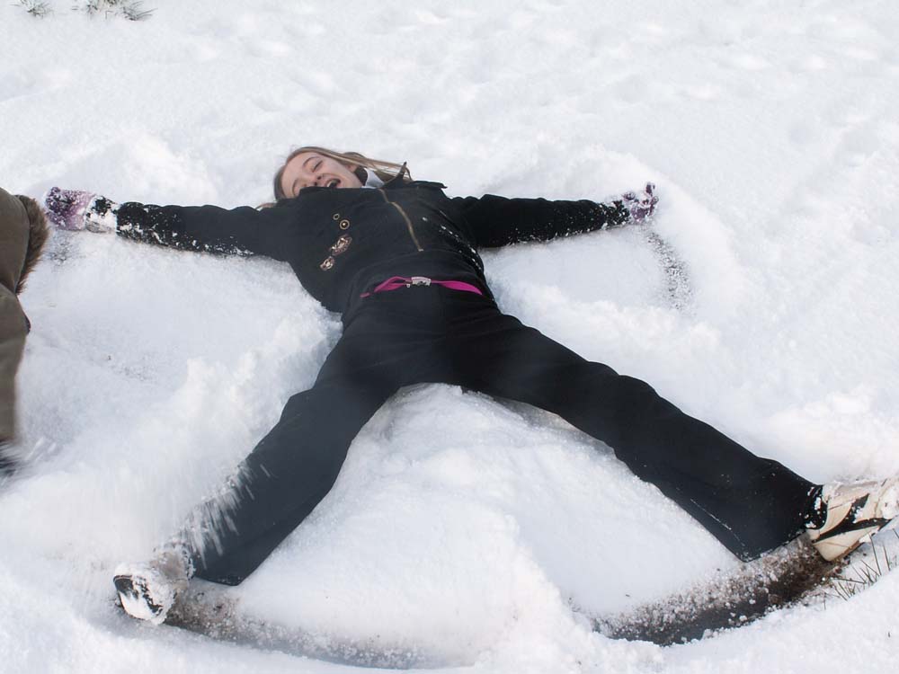 I created many snowy angels. The next day I’d forget where I made it or new snow covered my divine imprint.